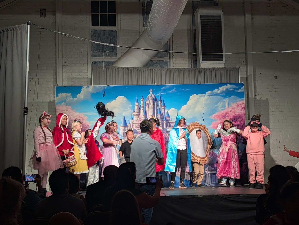 The evening opened with a recorder performance by 3rd-6th grade students who have been working with Home School Academy teacher Erika Baker. Their musical introduction set the tone for the elementary double feature that followed. TK-2nd grade students delighted the audience with a fairy tale mash-up titled Once Upon a Playdate, while 3rd-6th grade performers took the stage next with Once Upon a Mix-Up.