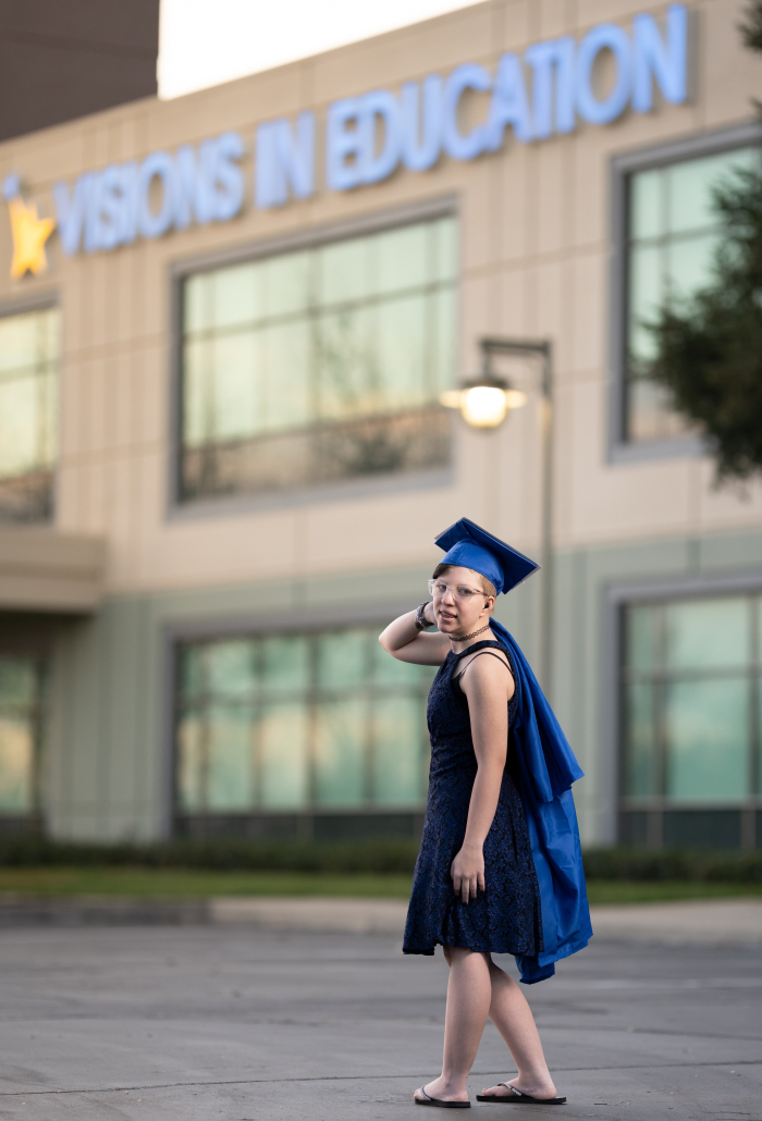 “Visions allowed me to complete my school work while still having an active life,” she shared. One of the most impactful parts of her experience was her relationship with her credentialed teacher, Lonny Gosset.