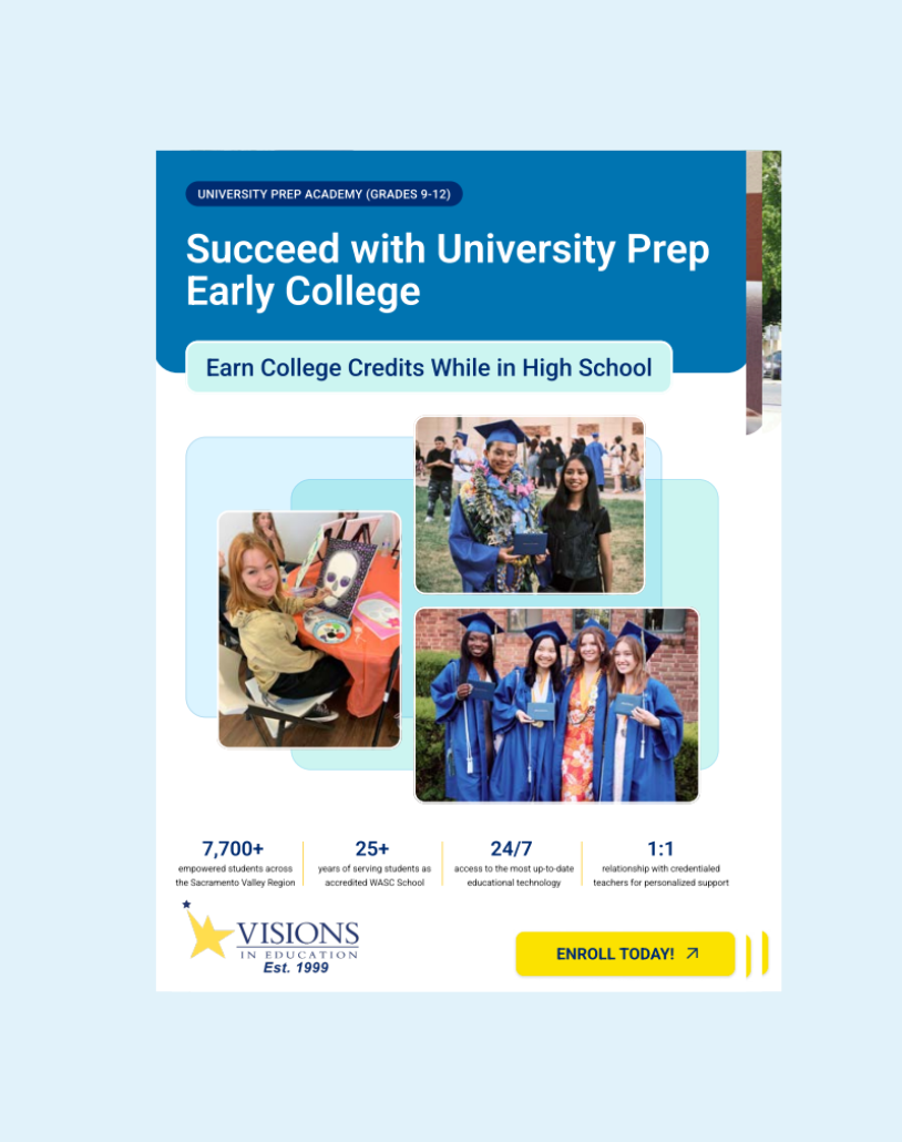 In our Early College program, students have the unique opportunity to participate in college-level courses, earning both high school and college credit simultaneously. This innovative program not only provides students with exposure to a college environment through dual enrollment, but also offers the possibility for some students to complete an Associates of Arts degree or receive Certificates by the time they graduate high school. Students in our Early College program will have enrollment priority to college courses offered by the Los Rio Community College District. Students who are interested in earning an Associates Degree and/or a Certificate can meet with our counselors to get more information.