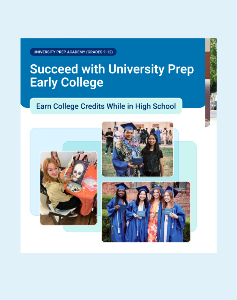 Start the journey towards higher education with our University Prep Early College Academy. Designed for students in 9th through 12th grade who want to seamlessly apply to a four-year university, state college, or community college after high school. This unique program allows students to work independently from the comfort of home with the guidance of a dedicated team of educators.